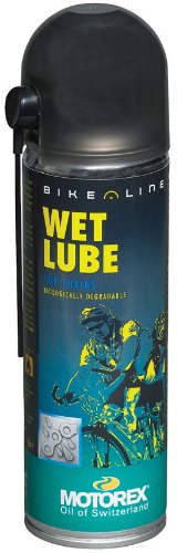 MOTOREX WET LUBE has been specially developed for conditions that require a lubricant with long-lasting chain adhesion. This biodegradable lubricant has strong water-repellent properties that make it ideal for damp or wet weather. Its long-lasting lubricant action makes it particularly suitable for all-round or everyday use. Method of use: Apply to dry, clean chain and derailleur while moving the relevant parts. Avoid contact with the brakes in order not to impair their action.